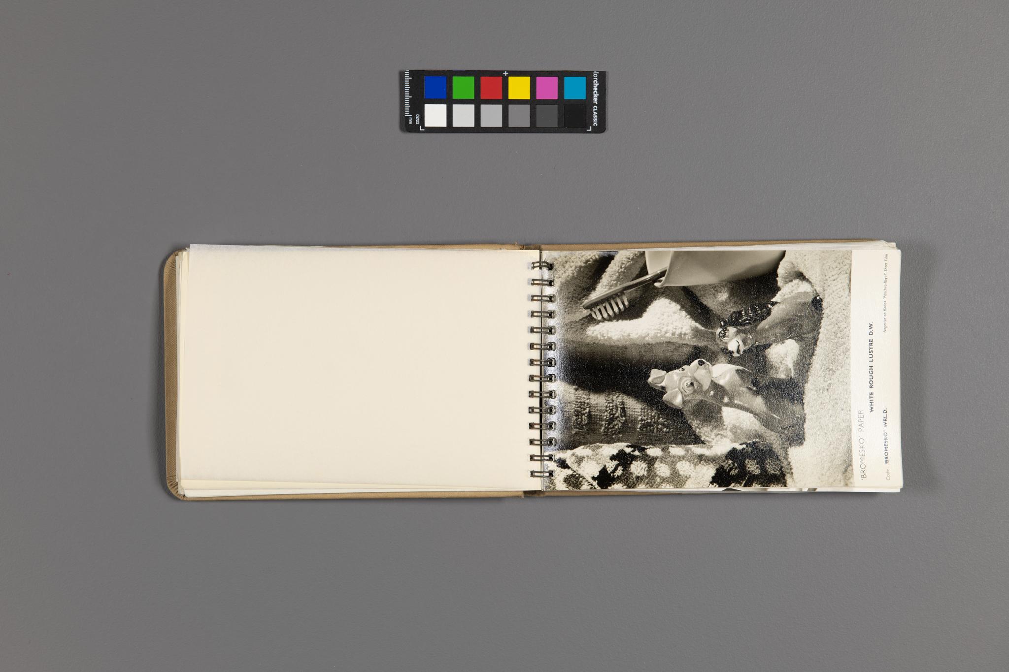 We selected 30 photographs from our collection of historic photographic sample books to test the image captioning abilities of 10 of today's biggest vision-language models (VLMs). The photos were chosen primarily for their difficulty [Fig. 1]. Each photo is shown embedded in the pages of a photographic sample book, which is itself sitting on a grey background beneath a color checker. The models therefore need to find the photo before captioning it, and although we write our prompt with this in mind, models struggle to ignore this irrelevant visual context.